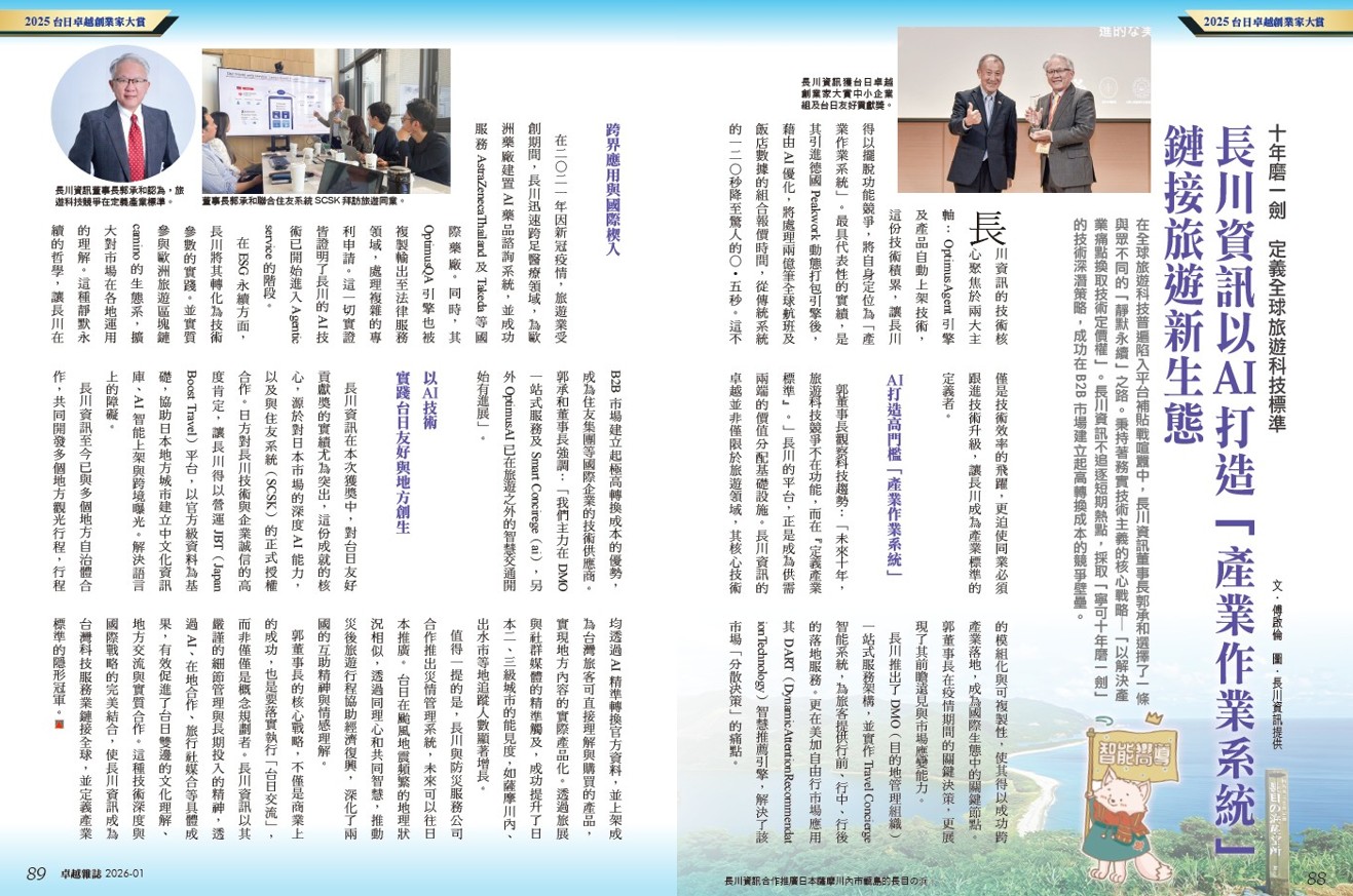 ▲卓越雜誌刊登之台日卓越創業家大賞專欄(2026.01發行 No.477期)。